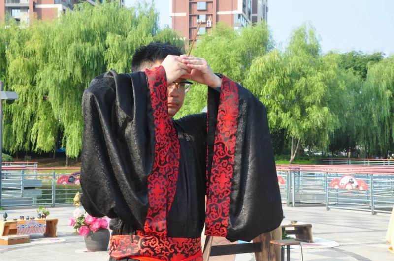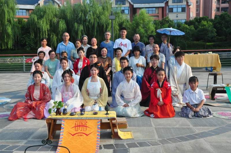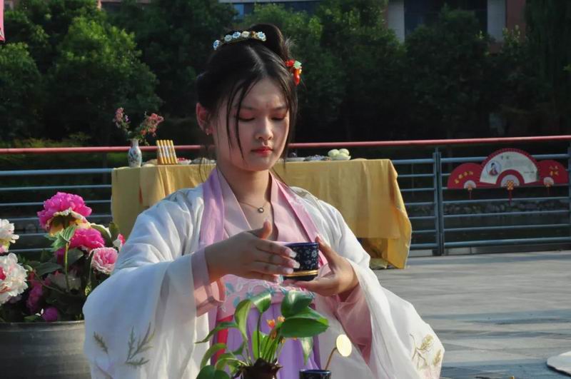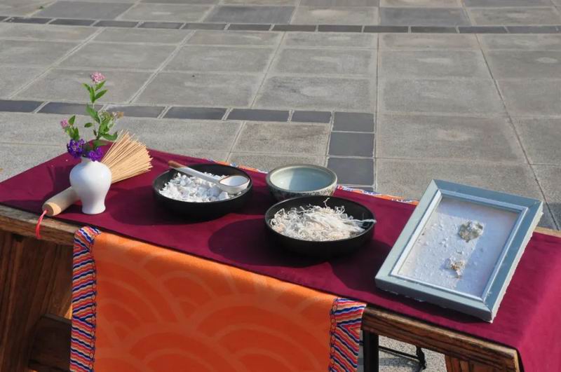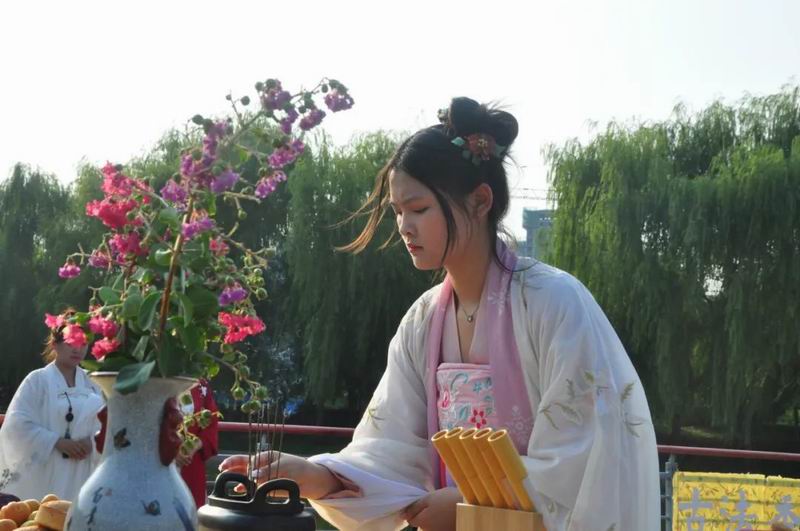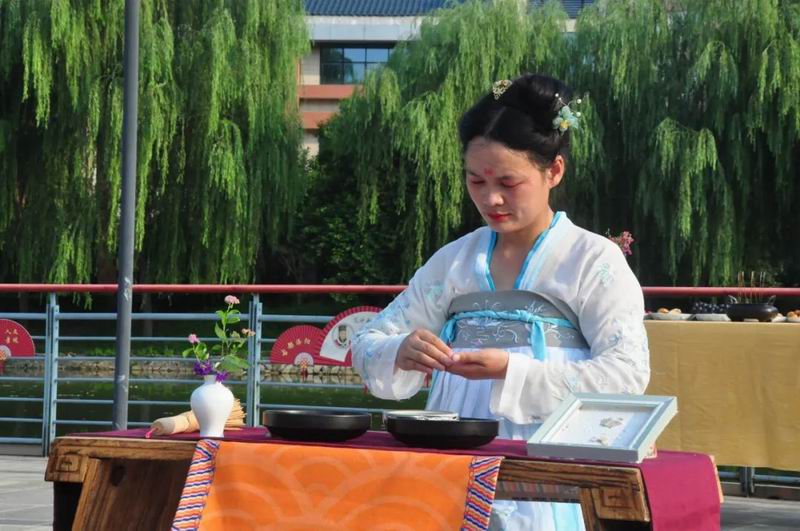 祭拜儀式結(jié)束后,傳統(tǒng)文化愛好者在古樸深沉、韻味悠長(zhǎng)的古琴演奏中展示了制香、茶藝、古法造紙、香染等非遺文化和傳統(tǒng)技藝。