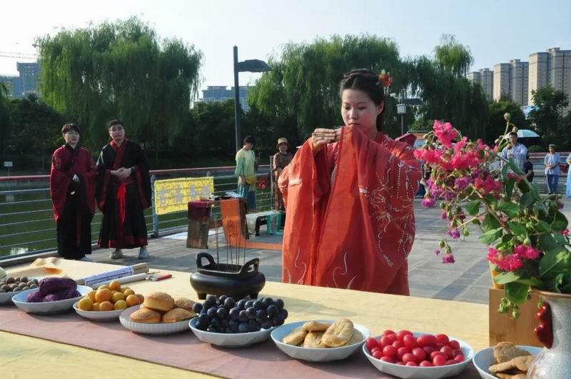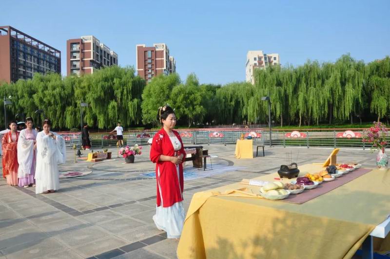 今天是8月4日,農(nóng)歷七月初七乞巧節(jié)。下午17時(shí)許,中國(guó)華僑國(guó)際文化交流基地炎黃科技園的湖心平臺(tái)上格外熱鬧,一場(chǎng)別開生面的乞巧節(jié)傳統(tǒng)文化大集活動(dòng)正在這里舉行。